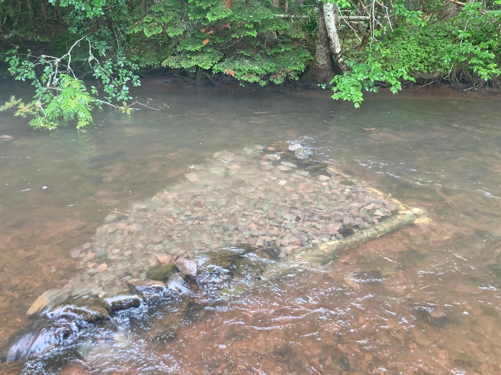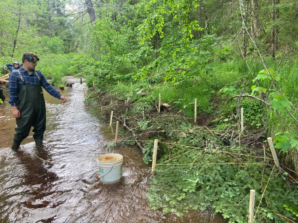 Here’s a recap of the 2021 work season for the Central Queens Branch of the PEI Wildlife Federation (CQWF). CQWF uses a holistic approach to restoring degraded habitat components for both Atlantic salmon and brook trout. During 2021 CQWF enhanced spawning habitat for Atlantic salmon along the mid-section of Howell’s Brook and also along the lower section of the main West River. The reaches utilized spawning beds which consisted of Nova Scotia river rock in a combination with soft engineered structures that altered the hydraulic parameters in order to draw female salmon to spawn over high-quality spawning habitat. Improving spawning habitat is of a high priority since improving spawning habitat can increase embryo survival and translate into juvenile recruitment. This project was funded by the Atlantic Salmon Conservation Foundation.